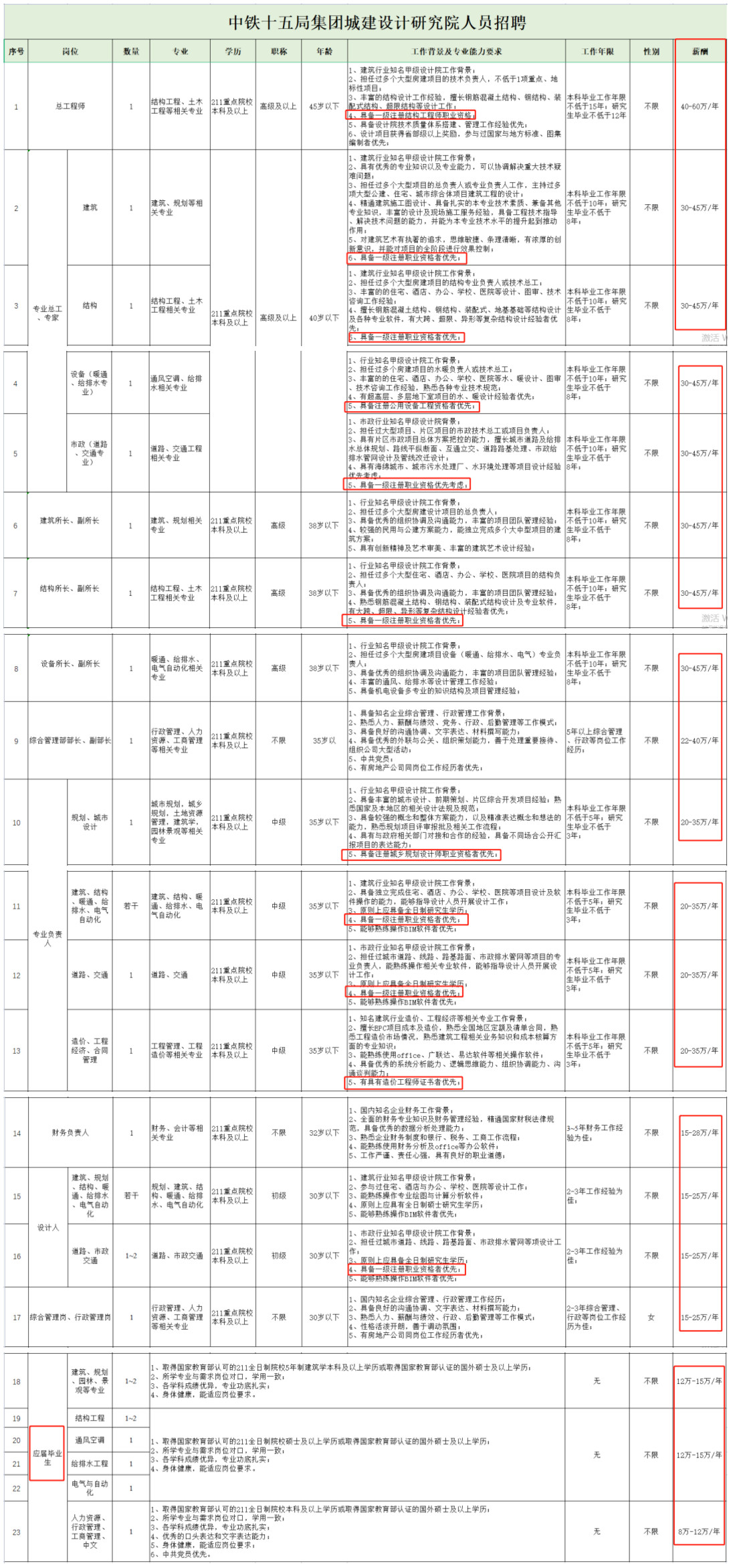 中鐵十五局城建設計院招聘,年薪8w-60w!