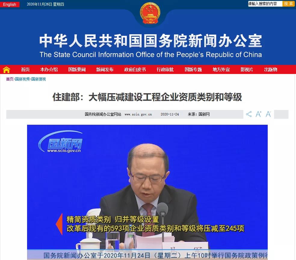 去年11月,國務院常務會議審議通過的《建設工程企業資質管理制度改革方案》對建筑企業資格等級和類別進行大幅壓減:改革后,現有的593項企業資質類別和等級將壓減至245項,所有的資質等級原則上都壓減為甲乙兩級,有的資質只設了一個等級。