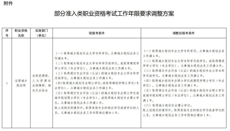 附件:部分準入類職業資格考試工作年限要求調整方案
