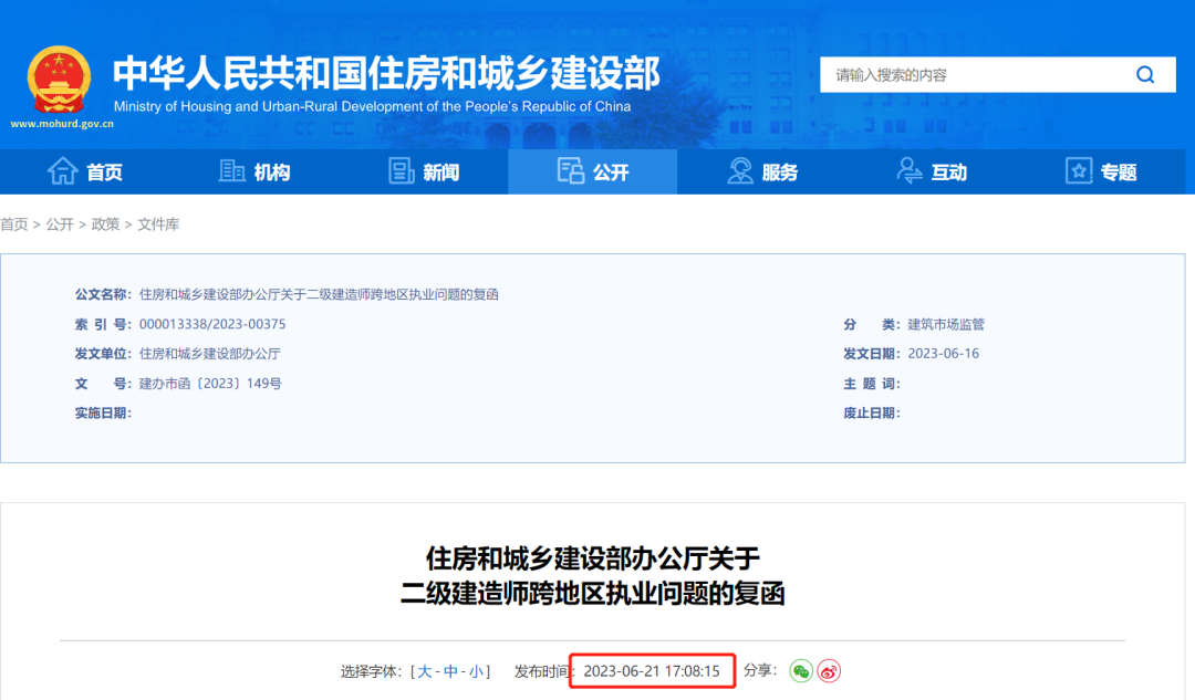 近日住建部發布《關于二級建造師跨地區執業問題的復函》,明確提出: