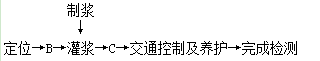 道路結構層如圖所示。根據設計圖紙,施工單位需在原有混泥土道路上加鋪瀝青混凝土面層。施工單位采用直接加鋪法進行施工,對破損嚴重的板塊進行鑿除。并重新澆筑混凝土板塊,對脫空板,不均勻沉降板采用如圖所示的工藝流程。