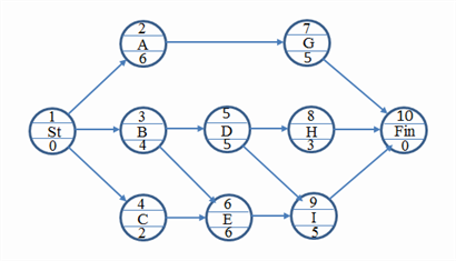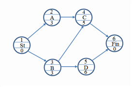 25.某網絡計劃中,工作A的緊后工作是B和C,工作B的最遲開始時間是14,最早開始時間是10;工作C的最遲完成時間是16,最早完成時間是14;工作A與工作B和工作C的間隔時間均為5天,工作A的總時差為(B )天。(2012真題)