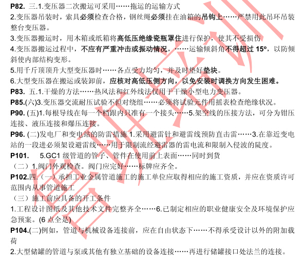 P140. 一、 1.(1)設(shè)計(jì)文件要求或規(guī)范規(guī)定脫脂 ……( 8)取源部件安裝完畢后,應(yīng)與設(shè)備和管道同時(shí)進(jìn)行壓力試驗(yàn)。( 8 點(diǎn)全是)