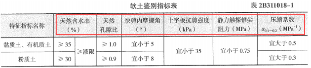 【解析】軟士可按表2B311018-1進行鑒別。當表中部分指標無法獲取時,可以天然孔隙比和天然含水率兩項指標為基礎,采用綜合分析的方法進行鑒別。