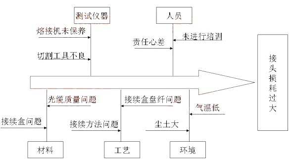 測試時發現光纜接續損耗過大,項目部組織了相關人員進行了分析和整改,工程如期完 成。