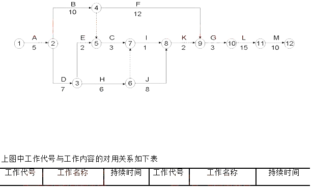 3、列出本項目的關鍵工作,計算計劃工期 答:關鍵工作是:A-D-H-J-K-G-L-M