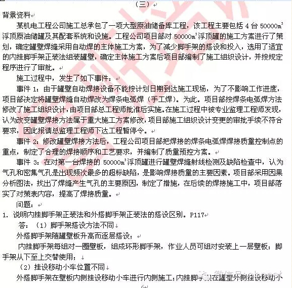 (4)腳手架費用不同:外搭腳手架正裝法,腳手架隨罐壁板升高而逐層搭設,內掛腳手架正裝法,一臺儲罐施工用2-3層腳手架,1-2個樓梯間,腳手架從下至上交替使用;所以項目部采用內掛腳手架正裝法,可以節約腳手架費用。