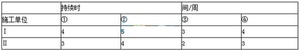 施工分為Ⅰ、Ⅱ、Ⅲ、Ⅳ、Ⅴ5個部分,Ⅰ、Ⅱ作業時間見下表,Ⅲ、Ⅳ、Ⅴ作業均為1周。