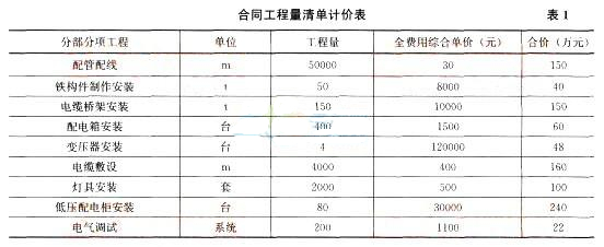 某安裝公司中標了某貿易中心大樓的電氣安裝工程,該工程采用以人工費為取費基數的全費用綜合單價計價。中標工程量清單如表1所示,措施項目總費用為210萬元。