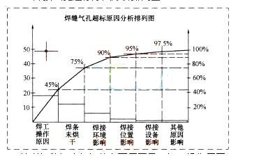 4.根據背景和列表,畫出針對產生焊接氣孔缺陷原因分析的排列圖。分析焊接中產生氣孔的主要原因。