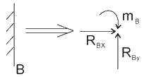 懸臂梁中的B點,即固定端支座,其支座反力為: