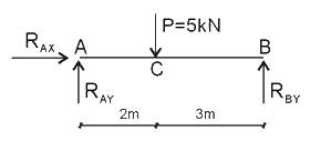 ——ΣMA=0 => 5×2=RBY×5=> RBY=2kN,RAY=3kN