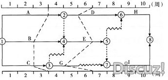 5.【2011年真題】某分部工程時(shí)標(biāo)網(wǎng)絡(luò)計(jì)劃如下圖所示,當(dāng)計(jì)劃執(zhí)行到第3周末及第6周末時(shí),檢查得到的實(shí)際進(jìn)度如圖中的實(shí)際進(jìn)度前鋒線所示。該圖表明( ?。?。