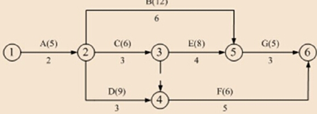 事件三:承包商在工程開(kāi)工前向監(jiān)理工程師提交了如圖所示的施工網(wǎng)絡(luò)進(jìn)度計(jì)劃,并說(shuō)明計(jì)劃中各項(xiàng)工作均按最早開(kāi)始時(shí)間安排作業(yè)。圖中箭線下方數(shù)據(jù)為持續(xù)時(shí)間(單位:周);箭線上方括號(hào)外字母為工作名稱,括號(hào)內(nèi)數(shù)據(jù)為預(yù)算費(fèi)用(單位:萬(wàn)元)。監(jiān)理工程師審查后批準(zhǔn)了該計(jì)劃。
