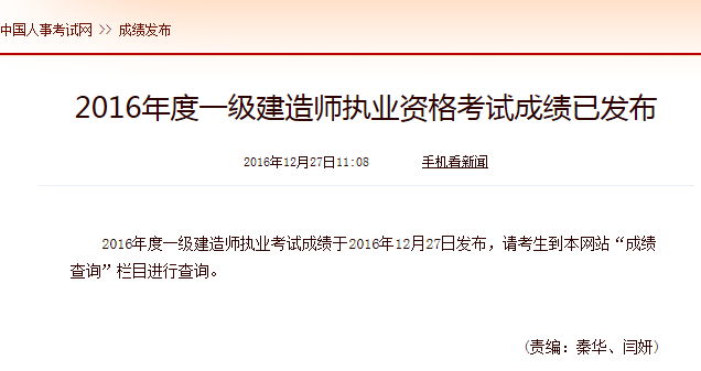 終于發布了! 2016年度一級建造師執業資格考試成績已發布,小伙伴們期待已久的一級建造師成績終于可以查詢了,