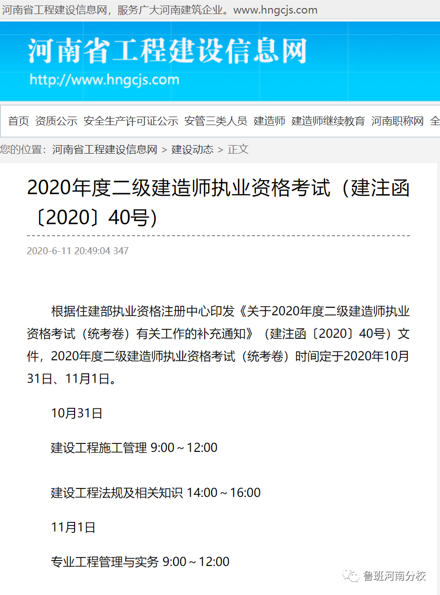 千呼萬喚始出來,河南省官宣確定了二建考試時間:10月31日、11月1日兩天!