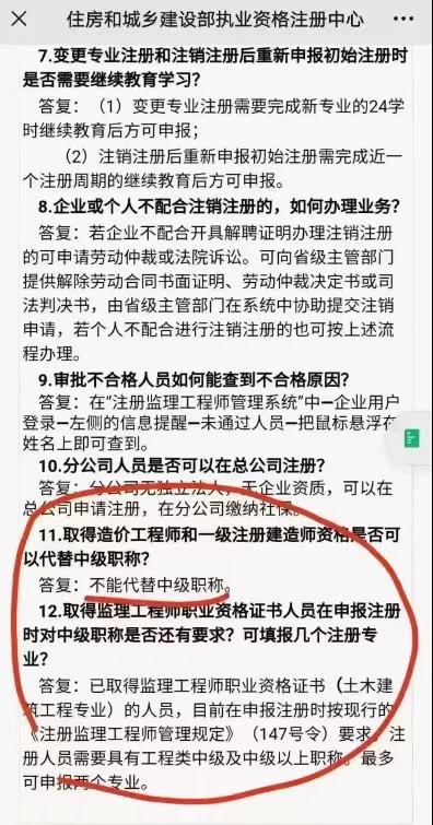 說一級建造師和造價師可以直接認(rèn)定中級職稱的可以休矣,住建部權(quán)威回復(fù):不行!監(jiān)理工程師更別說了。