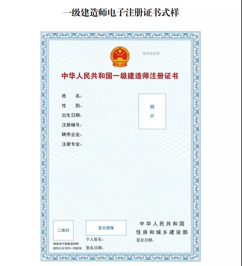 2.自 2021年10月15日起,全國范圍內準予一級建造師初始注冊、增項注冊、重新注冊、延續注冊的,不再發放紙質注冊證書或加貼防偽貼;聘用單位基本信息修改的,不再加貼防偽貼;因紙質注冊證書遺失、污損或個人信息修改 等需重新發放注冊證書的,不再補發或更換紙質注冊證書。