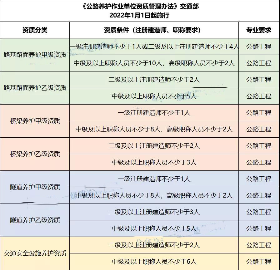 《公路養(yǎng)護作業(yè)單位資質(zhì)管理辦法》即將于2022年1月1日起施行。《辦法》新增并明確了對建造師、職稱人數(shù)的需求(如下圖),新的管理辦法將對公路專業(yè)的一級建造師和二級建造師需求有所影響,想從事公路、橋梁、隧道工作的考生機會來了,不要錯過,魯班培訓(xùn)2022年一級建造師和二級建造師面授課程年前大促正在進行中,歡迎咨詢魯班培訓(xùn)