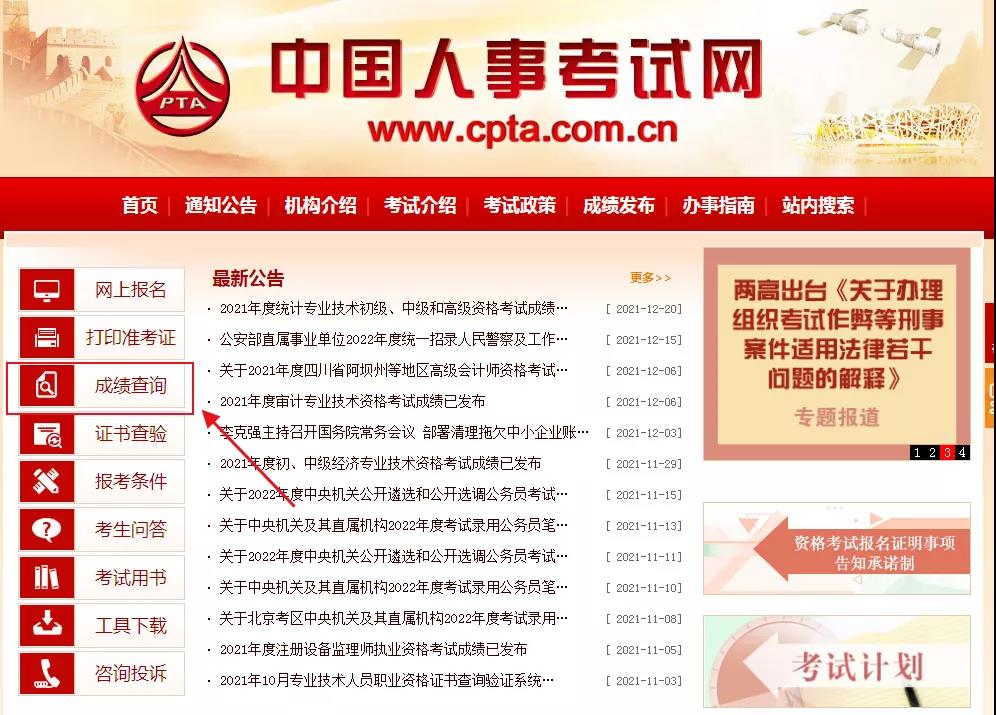 1?? 進入中國人事考試網,點擊成績查詢
