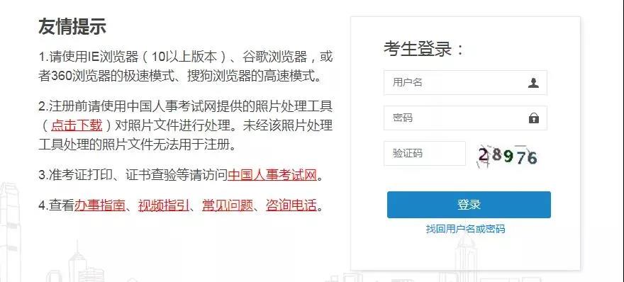 2?? 進入全國專業技術人員資格考試報名服務平臺,輸入用戶名、密碼、驗證碼