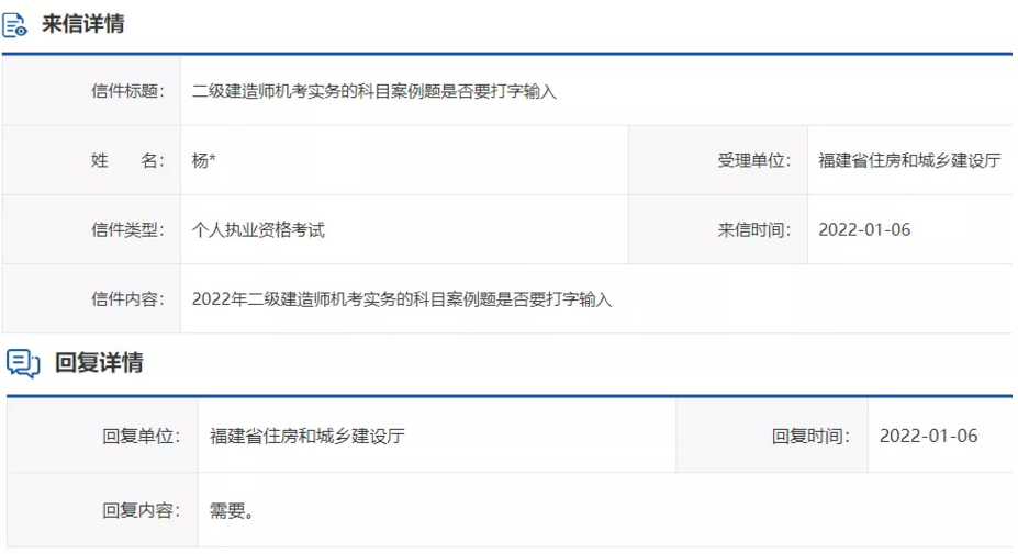 關于“2022年二建機考實務的科目案例題是否要打字輸入?”這個考生比較關心的問題,官方也給予了答復——需要,所以,對2022年的二建考生來說,面臨的另一個挑戰便是提高打字速度。