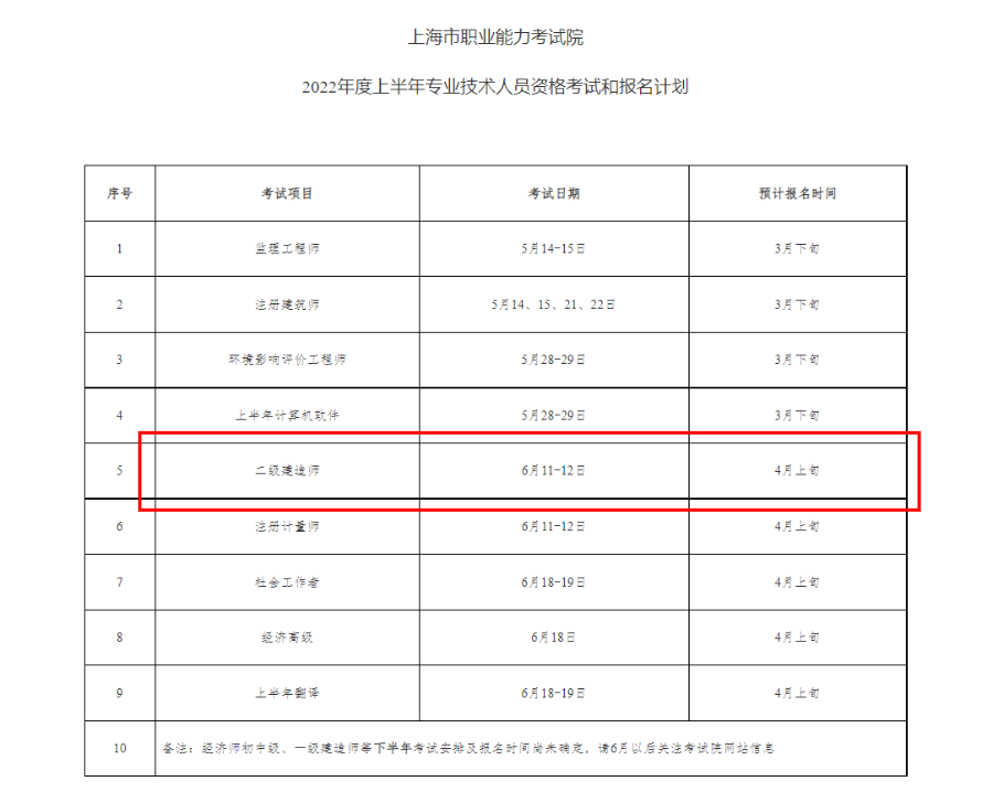上海發布2022年度考試計劃,考試時間確定為6月11日、12日,報名時間預計為4月上旬。