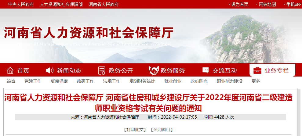 為做好我省2022年度二級建造師職業資格考試考務工作,根據《注冊建造師管理規定》(建設部令第153號)和《河南省人事廳河南省建設廳關于印發<河南省二級建造師執業資格考試實施辦法>的通知》(豫人職〔200522號)精神,現將有關事項通知如下: