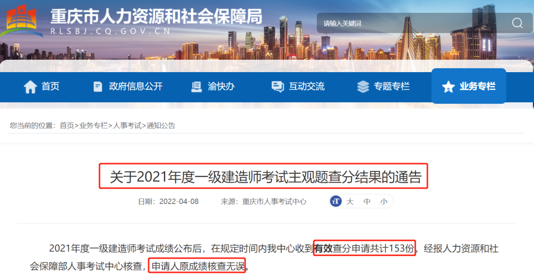 近日,重慶、云南兩地分別發布了2021年一級建造師考試成績復查結果的公告。