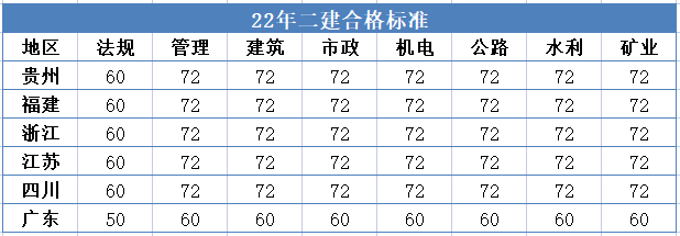 2022年二建合格標(biāo)準(zhǔn)(已公布地區(qū))