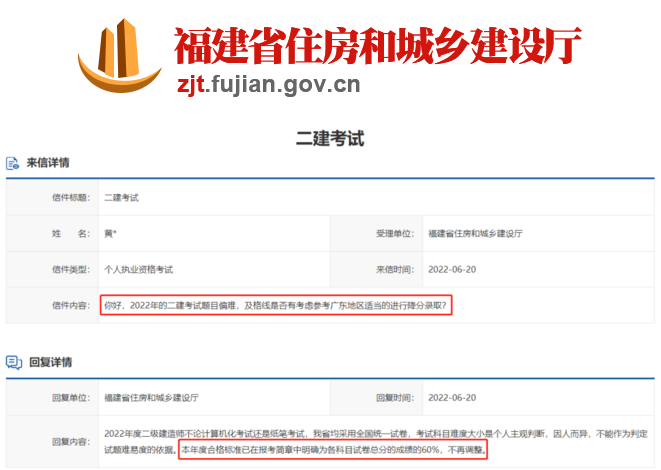 官方:福建2022年二建合格標(biāo)準(zhǔn)為60%!