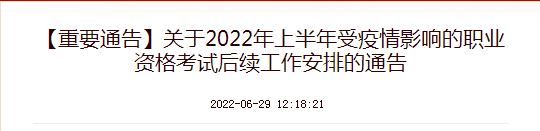 【重要通告】關于2022年上半年受疫情影響的職業(yè)資格考試后續(xù)工作安排的通告