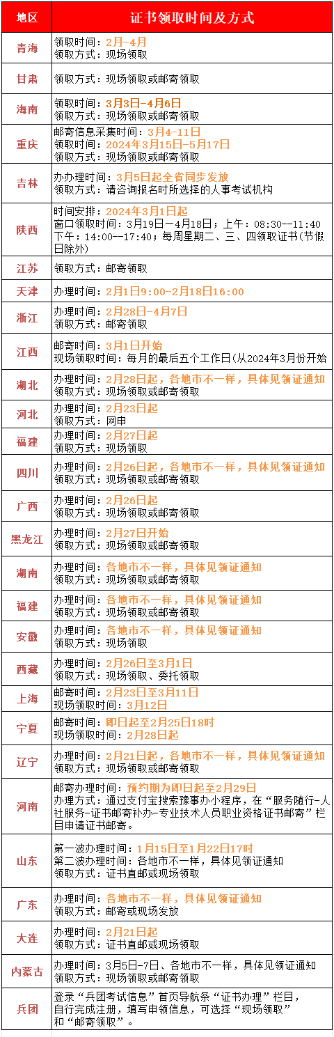 新增證書領(lǐng)取省份:甘肅、青海、海南
