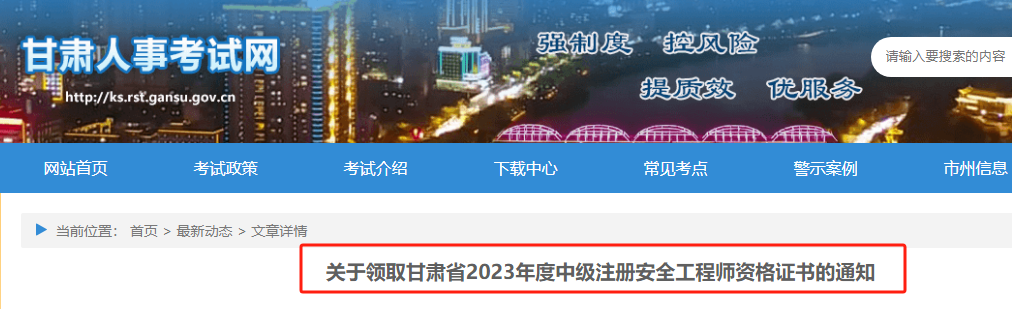 甘肅省2023年度中級(jí)注冊(cè)安全工程師資格證書從即日起開始發(fā)放,證書發(fā)放采取兩種方式(郵寄或現(xiàn)場(chǎng))辦理,為減少考生路途奔波,建議申請(qǐng)郵寄辦理?,F(xiàn)將有關(guān)事項(xiàng)通知如下: