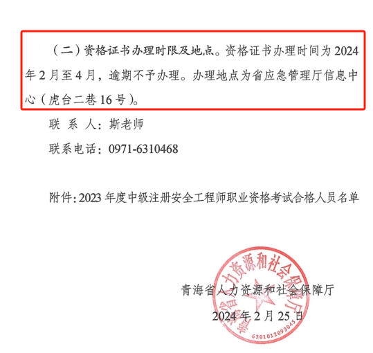 2023年度中級(jí)注冊(cè)安全工程師職業(yè)資格考試合格人員名單及證書辦理的通知