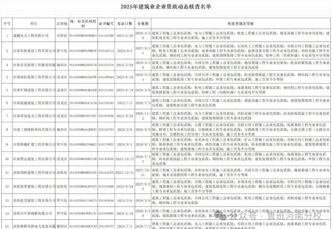 按照《河南省住房和城鄉(xiāng)建設(shè)廳關(guān)于對(duì)部分建筑業(yè)企業(yè)開(kāi)展資質(zhì)動(dòng)態(tài)核查的通知》(豫建市〔2025〕135號(hào))要求,對(duì)篩查發(fā)現(xiàn)的2023年和2024年連續(xù)兩年無(wú)產(chǎn)值且多項(xiàng)資質(zhì)被標(biāo)注異常的建筑業(yè)企業(yè)開(kāi)展資質(zhì)動(dòng)態(tài)核查,現(xiàn)將有關(guān)要求通知如下: