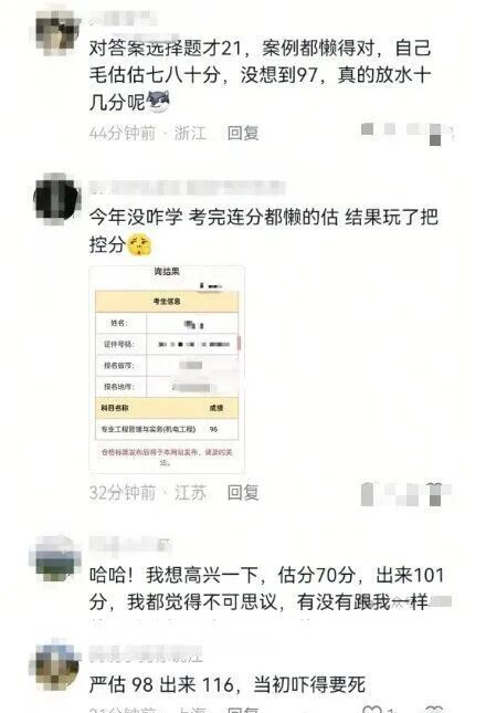 尤其是機電專業(yè),跟去年一樣具有代表性。本來很多人估分覺得自己頂多七八十分,懸得要命,甚至都已經(jīng)開始準備明年的教材了。