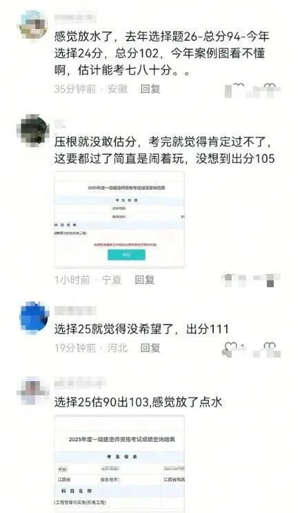 這種情況今年又實實在在地上演了一回,不少伙兄弟查看分數(shù)后甚至懷疑自己看錯了,反復(fù)刷新了好幾回才敢相信那個合格是真的。很多考友都在群里喊,說今年一建成績絕對是放水了,而且是開了閘的大放水。