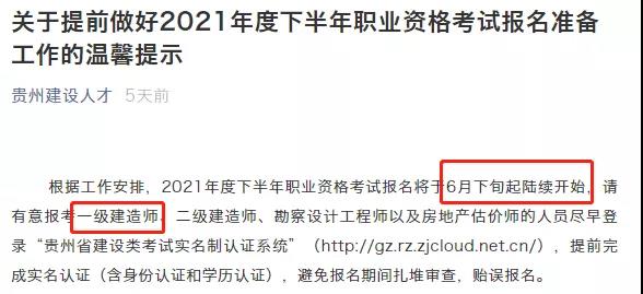 2021一級(jí)建造師考試將于6月下旬開始陸續(xù)報(bào)名~~