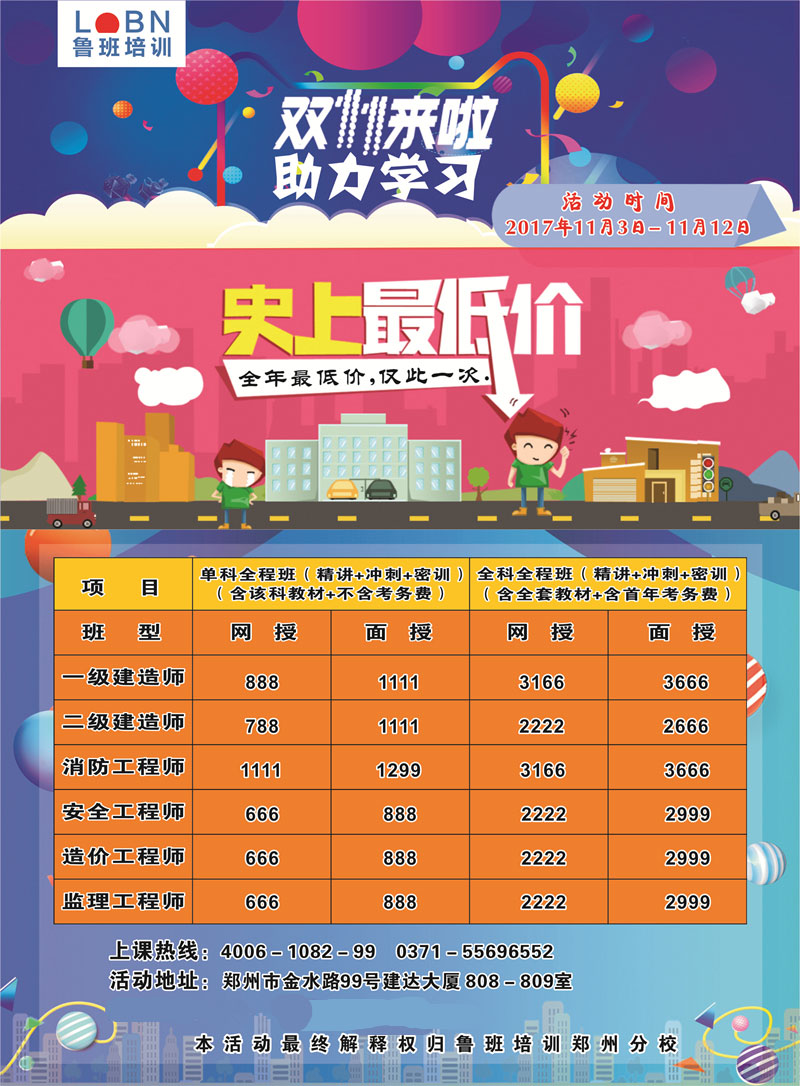 您的當(dāng)前位置:魯班培訓(xùn)-一建培訓(xùn),二建培訓(xùn),監(jiān)理,注冊安全工程師等 > 開課通知 > 優(yōu)惠活動(dòng) >