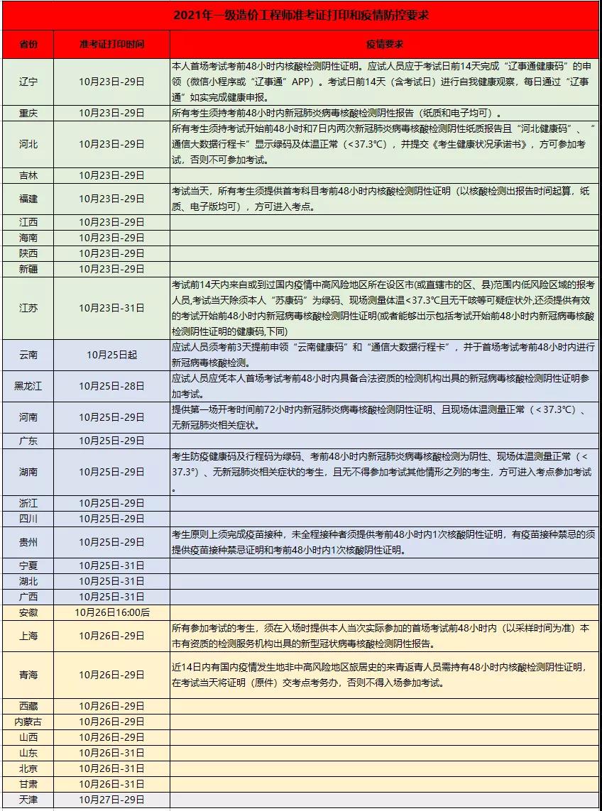 附:2021年一級造價工程師準考證打印時間及疫情防控要求