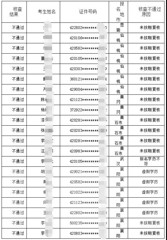 ①湖北考后審核21人取消全部成績