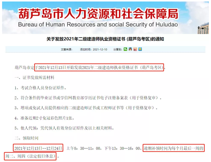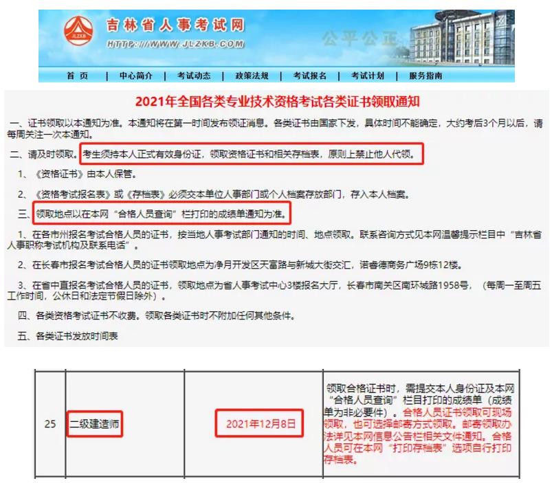 2021年吉林二建證書12月8日開始領取,原則上禁止他人代領。
