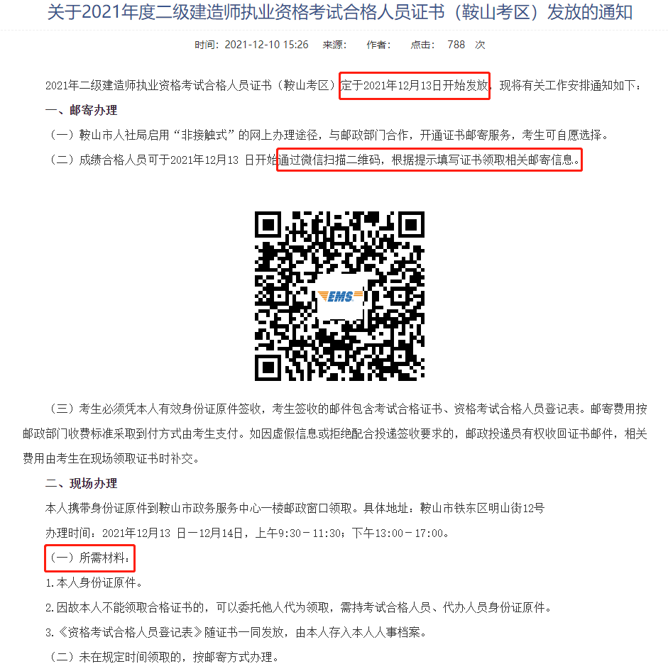 自2021年12月21日起,可通過現場或郵寄方式辦理證書領取事宜。