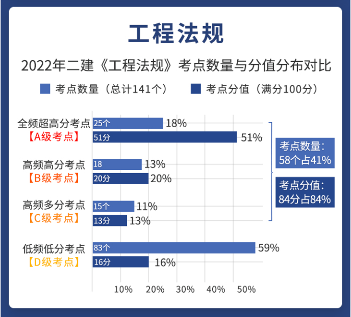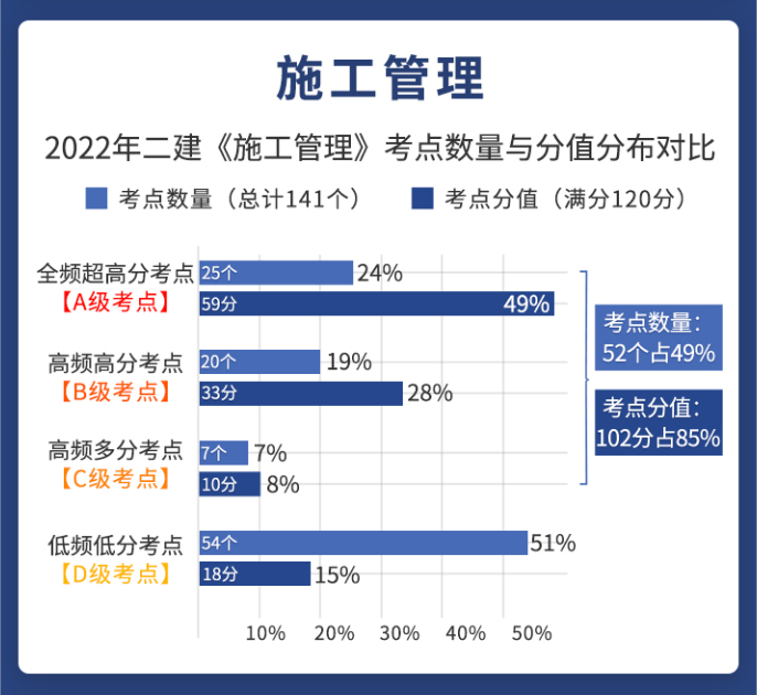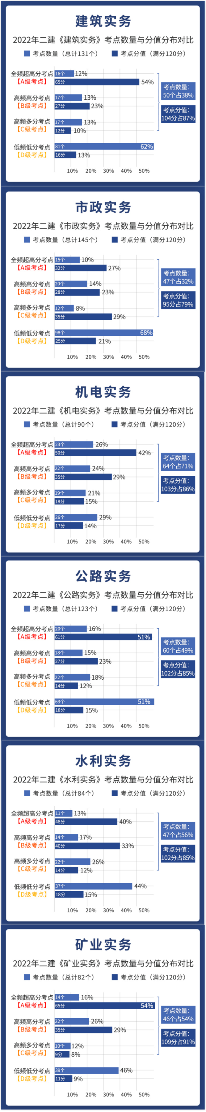 部分實務科目的考點較為分散,所以A、B級考點較少,但即便如此,A、B級考點總分值依然能達到60-100分,非常可觀!對于通過考試,這些分值,可謂不得不拿!