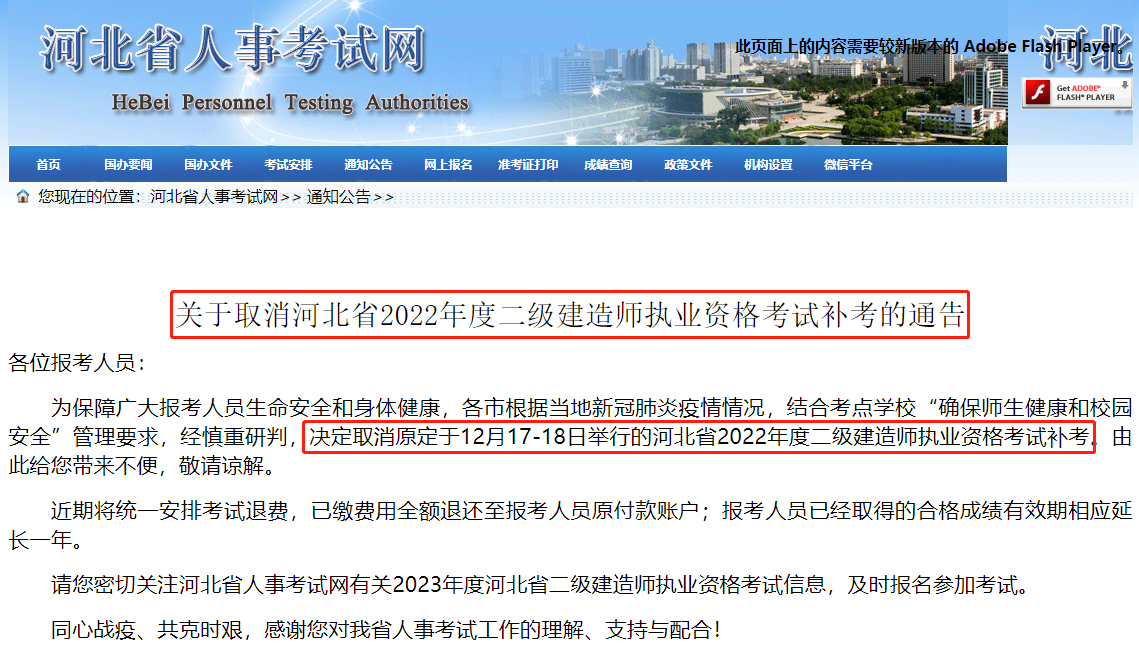 河北省取消原定于12月17-18日舉行的2022年度二級建造師執業資格考試補考。