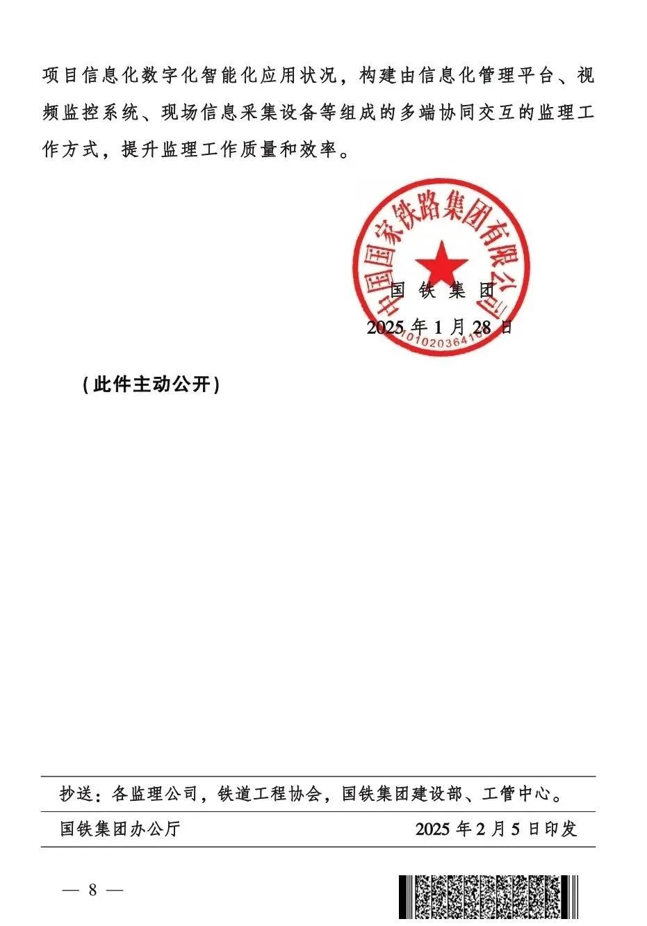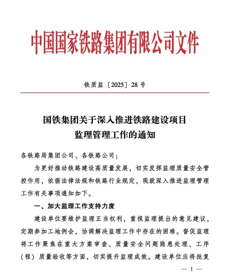 建設單位要依據有關法律法規、鐵路監理規范及國鐵集團有關規定,及時修訂監理管理、信用評價實施細則,補充完善日常檢查扣分、一般不良行為認定條款,細化完善“黑名單”管理、質量紅線管理、A級總監推選等工作內容和程序,進一步夯實監理管理工作基礎。對于監理管理工作中存在監管不力、不作為、違規提出要求等行為,造成嚴重影響或后果的,國鐵集團將按規定追究建設管理人員責任。