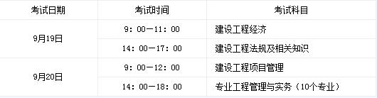 2015年一級建造師資格考試定于9月19、20日進行。具體考試時間如下: