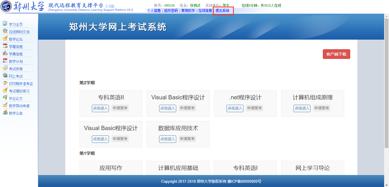 在線考試主要通過客戶端登陸后進(jìn)行考試,如下圖所示:
