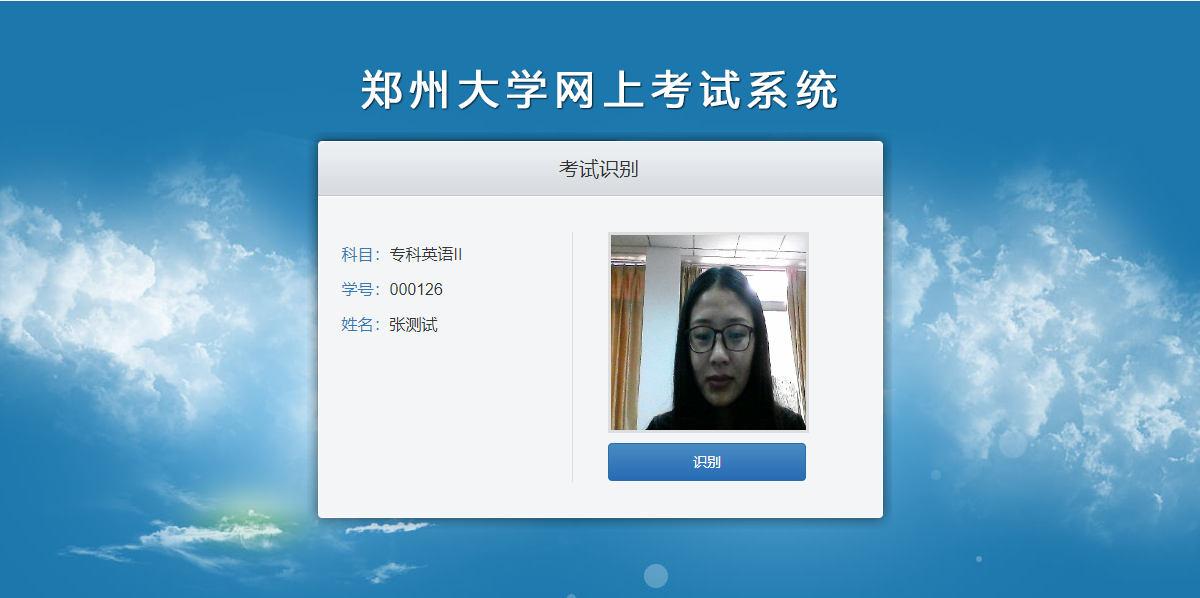 賬號(hào)密碼驗(yàn)證通過后,考試系統(tǒng)還需要對(duì)考生面部進(jìn)行識(shí)別,點(diǎn)擊【識(shí)別】按鈕,并按系統(tǒng)提示完成相應(yīng)動(dòng)作。系統(tǒng)在計(jì)時(shí)倒計(jì)時(shí)讀秒完成后確認(rèn)考生為本人時(shí)方可進(jìn)入考試,如下圖所示: